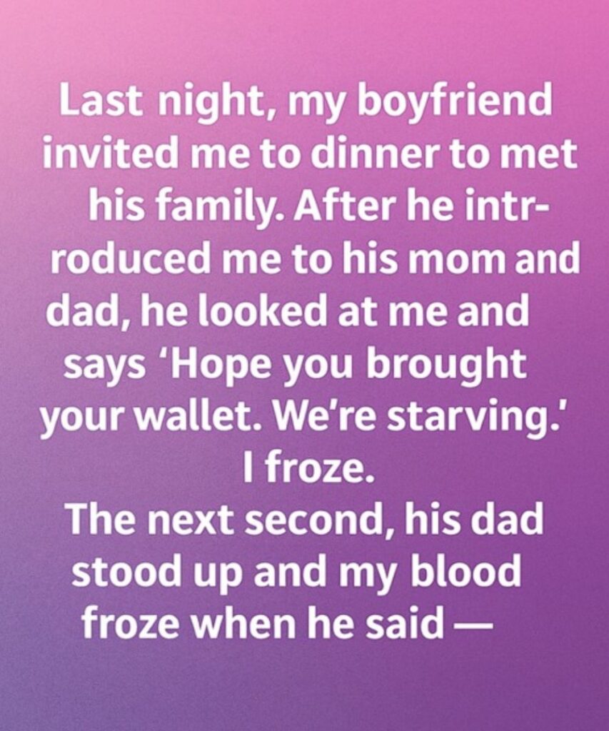 When we arrived, the tension eased a little. The smell of roasted vegetables, the way his parents greeted me—it felt open, not formal. Then my boyfriend joked that I’d be paying for everyone. For a second, I didn’t know how to respond. His father laughed and waved it off, and the room followed. It was the first sign of how they interacted—with humor that comes quickly, but not to put anyone down.