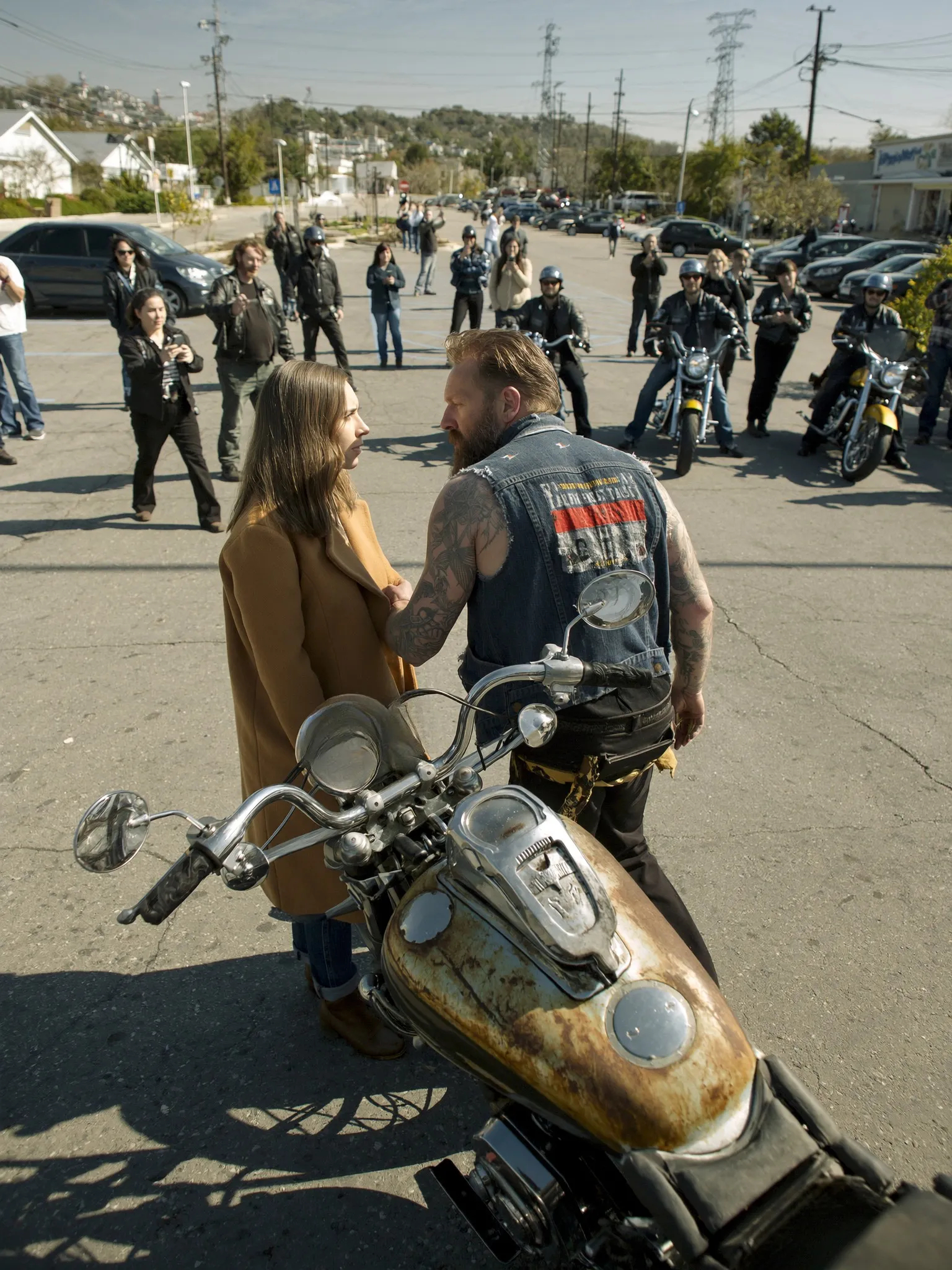 They surrounded the lot, not aggressively, but with purpose. People nearby stepped back. You could feel the tension rise without anyone saying a word.