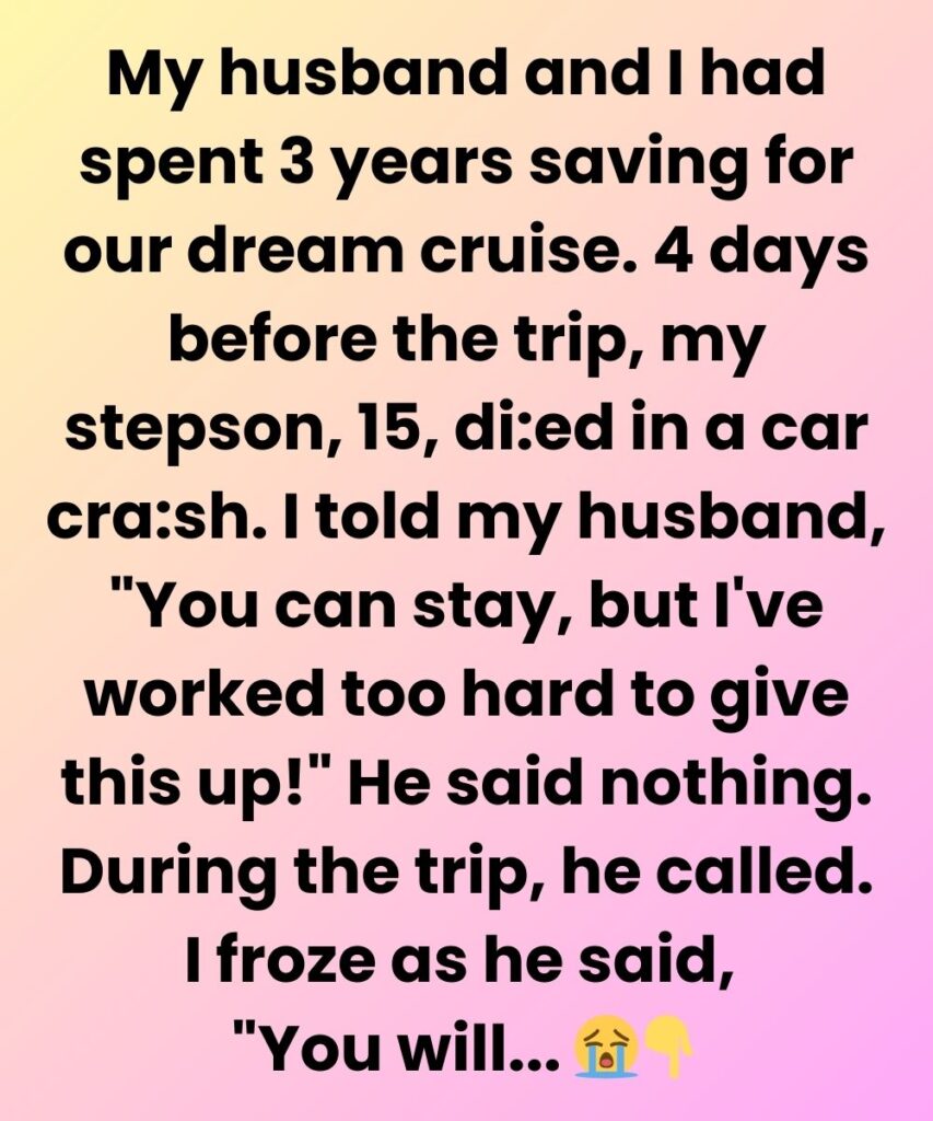 “I didn’t know how to show up for grief I wasn’t allowed to own,” I said. “He wasn’t my son. I thought staying out of the way was the kindest thing. The cruise felt like the only thing I could control. I was wrong.”