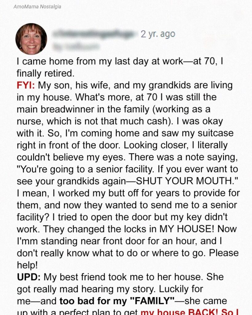 The locks had been changed. A sticky note was slapped to the top case in Delia’s neat little script: You’ve moved to a senior facility by choice. Don’t make a scene. If you want to see the kids again, keep quiet.