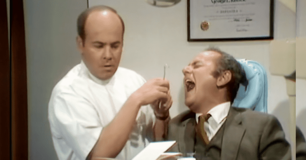 Years later, Conway revealed on Conan that Korman was laughing so hard he literally wet his pants during the scene. It wasn’t just the performance—it was the unpredictability. Conway never told Korman what he planned to do in advance, forcing genuine, unrehearsed reactions that became part of the magic. Even more surprising, the entire idea for the sketch came from Conway’s real-life experience in the Army, when an actual dentist numbed his own thumb during a procedure.