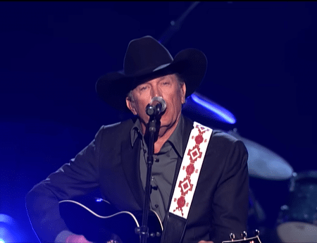 The lights dimmed into a warm, amber glow as George Strait walked to center stage, his black cowboy hat casting a familiar shadow across his face. With the same calm authority he’s carried for decades, he lifted his guitar and began the opening lines. His voice — steady, smooth, unmistakably Strait — drifted through the room like a warm breeze rolling over open country. Behind him, the band settled into a gentle arrangement, steel guitar crying in the distance while the rhythm section kept an easy, unhurried pulse.