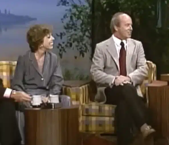 Tim Conway joined the interview with the same mischievous energy that made him a fan favorite on Carol’s show. A gifted writer and performer, he shared a story about attending a Hollywood party where, of all things, his car was stolen. Delivered with his trademark deadpan timing, the tale had Johnny and Carol in stitches — and the audience right along with them.