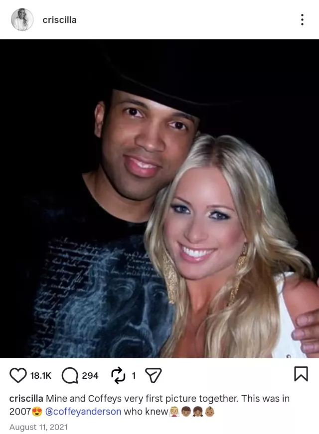 Criscilla and Coffey Anderson met at a church in Los Angeles and quickly developed a deep connection. Though they began dating in 2008, Criscilla once revealed their first photo together was taken in 2007 — long before either realized they would build a life, marriage, and family together.