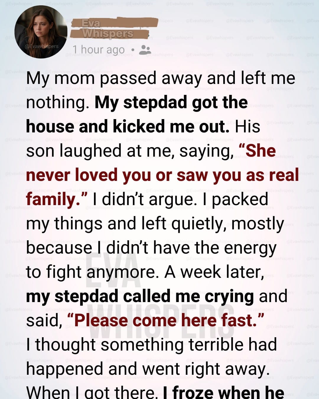 “Wait!” my stepdad shouted when he saw me. His face was pale, his eyes swollen from crying. He looked older than I remembered, like the past week had aged him ten years.