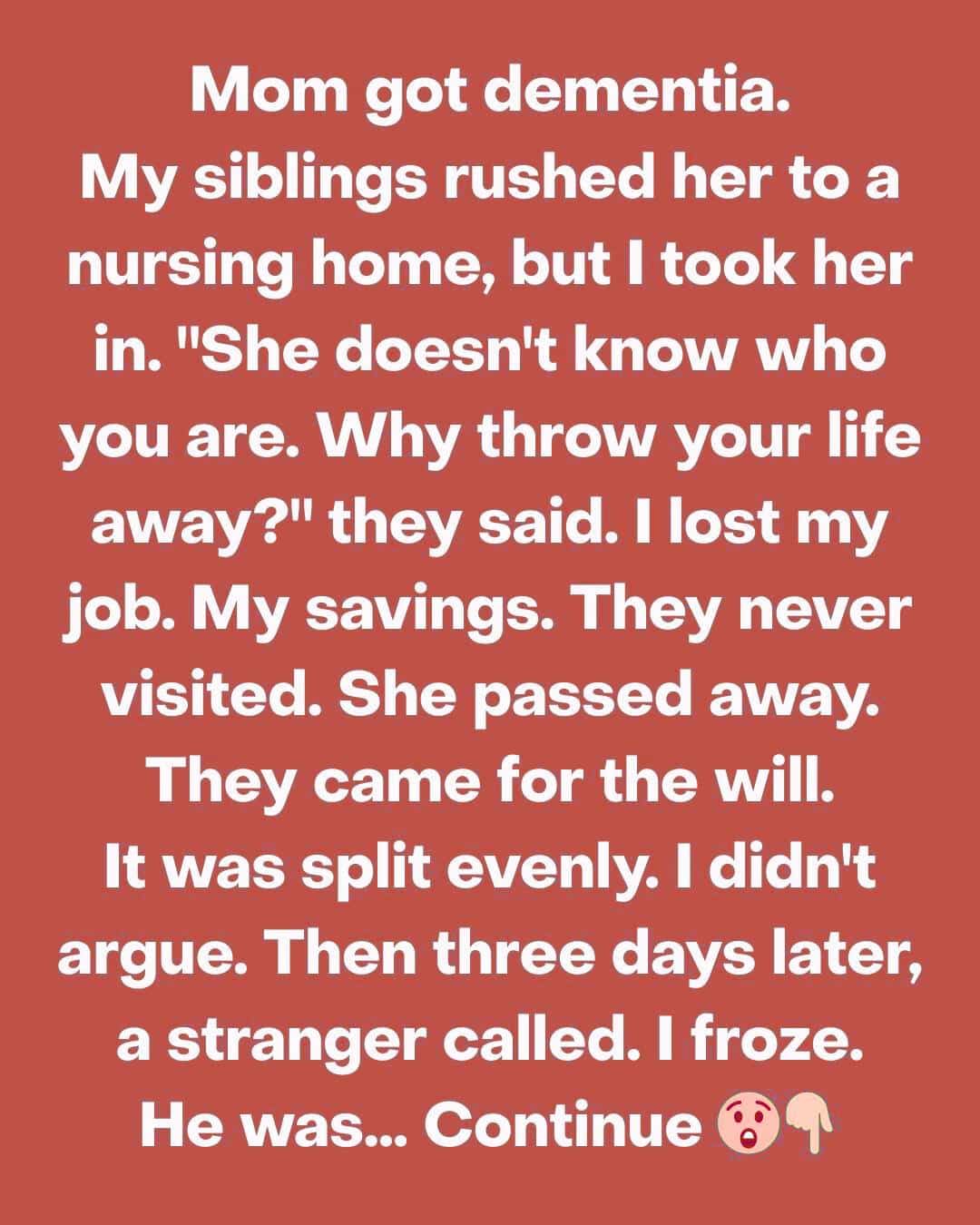 When my mother was diagnosed with dementia, my siblings moved quickly to solve what they saw as a practical problem. They spoke in schedules and facilities, in costs and availability, as if her life had already begun closing. To them, she no longer recognized anyone, so a nursing home seemed sensible.