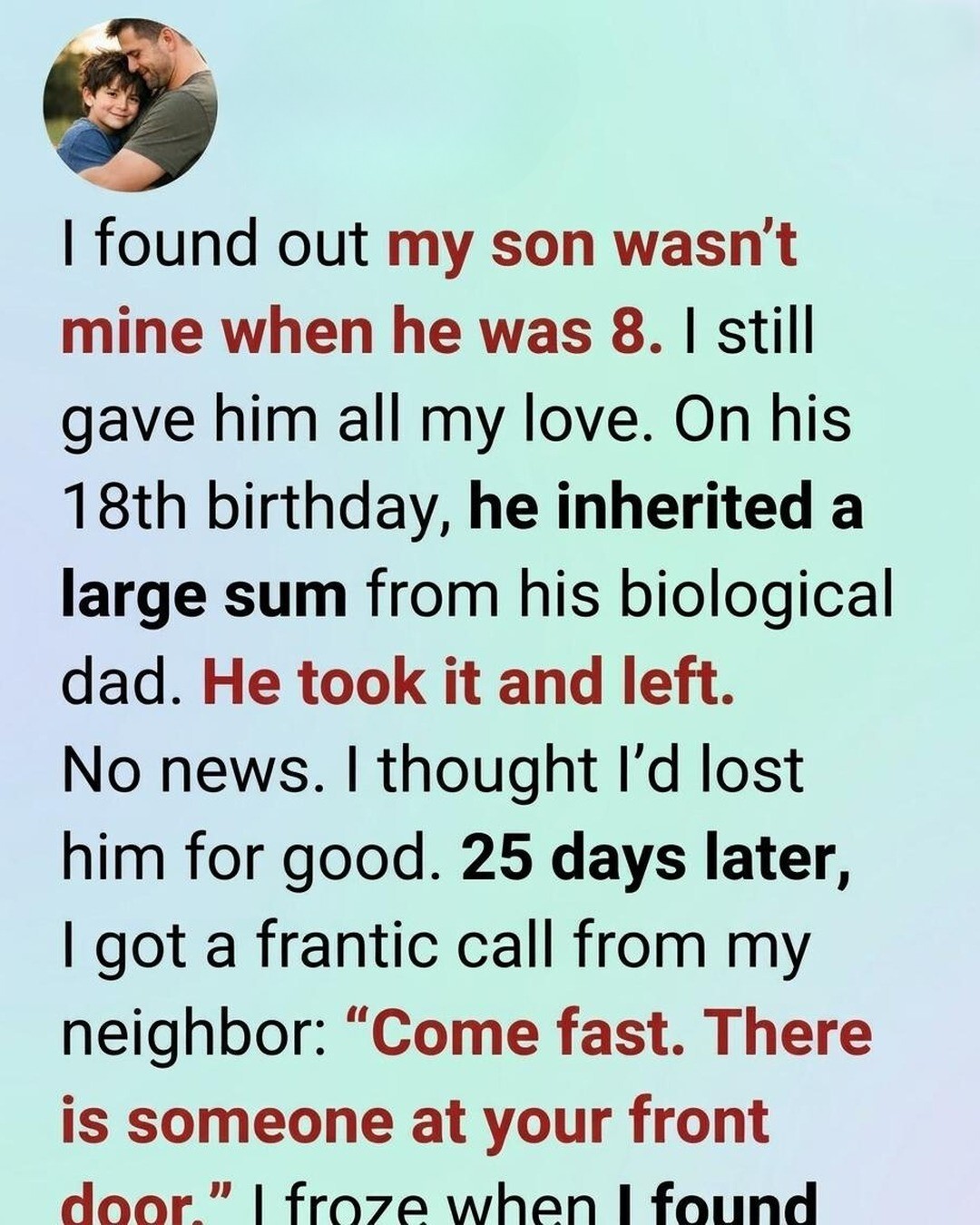 Years later, when he turned eighteen, the truth reached him from another direction—through an inheritance tied to his biological father.