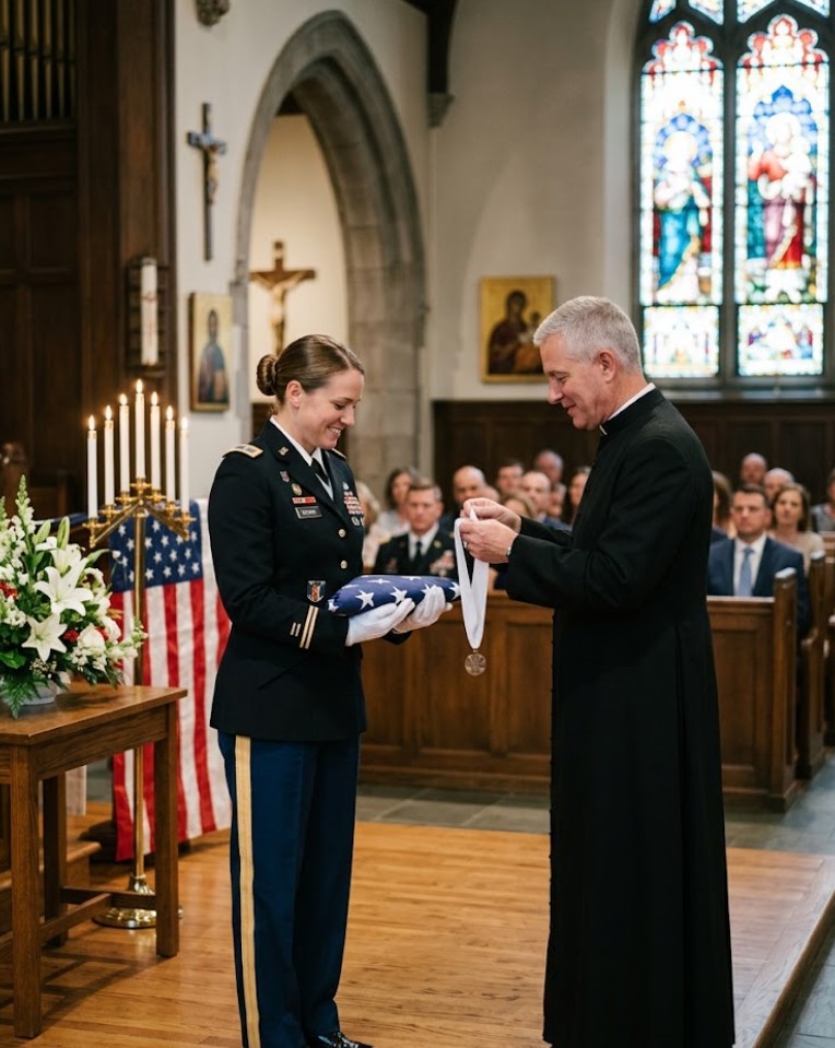In the middle of the service, a military chaplain approached me with unusual urgency. He didn’t interrupt the ceremony, but gently guided me away from the crowd and into the shadows along the side of the church. Without explanation, he pressed a small brass key into my hand. His voice dropped to a whisper as he spoke a name I had never heard before—one that felt completely out of place in my life. Before I could ask a single question, he stepped back and returned to his position, leaving me standing there with a key and a growing sense that something was very wrong.