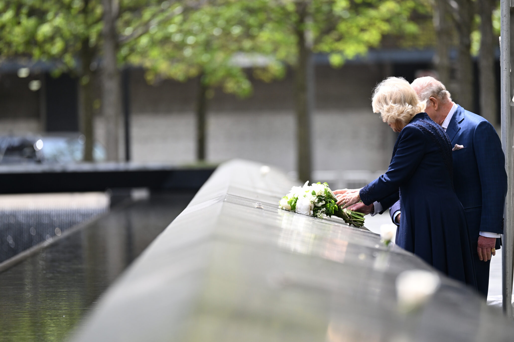 Standing before the memorial’s twin reflecting pools — each marking the footprint of the original towers — Charles and Camilla paused in silence. The names of nearly 3,000 victims, lost in both the 2001 attacks and the 1993 World Trade Center bombing, surround the site, etched into bronze panels that continue to draw visitors from around the world.